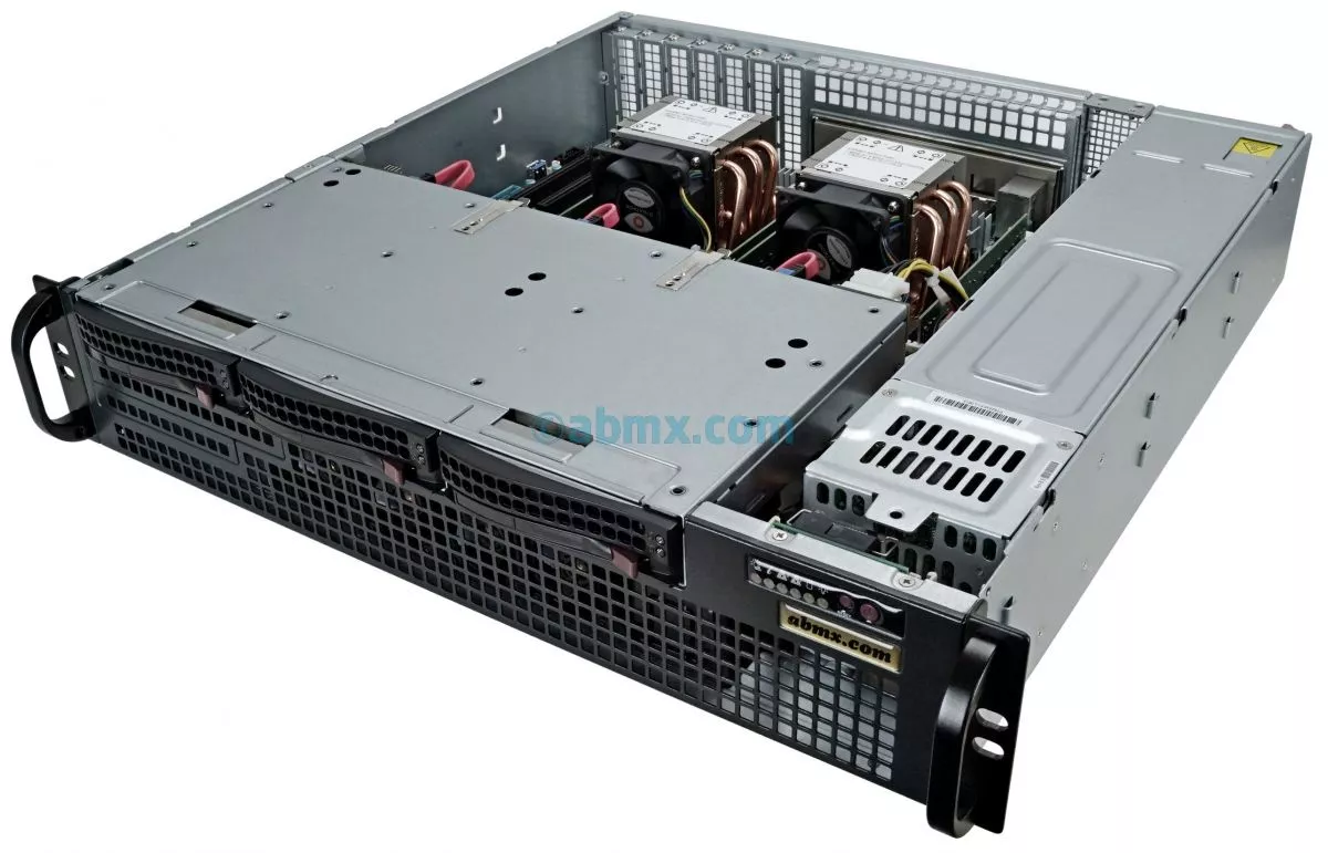 This 2U Server features dual xeon scalable CPUs for a massive 64 cores for high performance processing power, and supports up to 2 TB of DDR4 ECC Registered memory. Housed in a robust 2U chassis with three front hot-swap drive bays and redundant power supplies for reliability and flexibility. Ideal for enterprise virtualization, storage, and compute-intensive workloads.