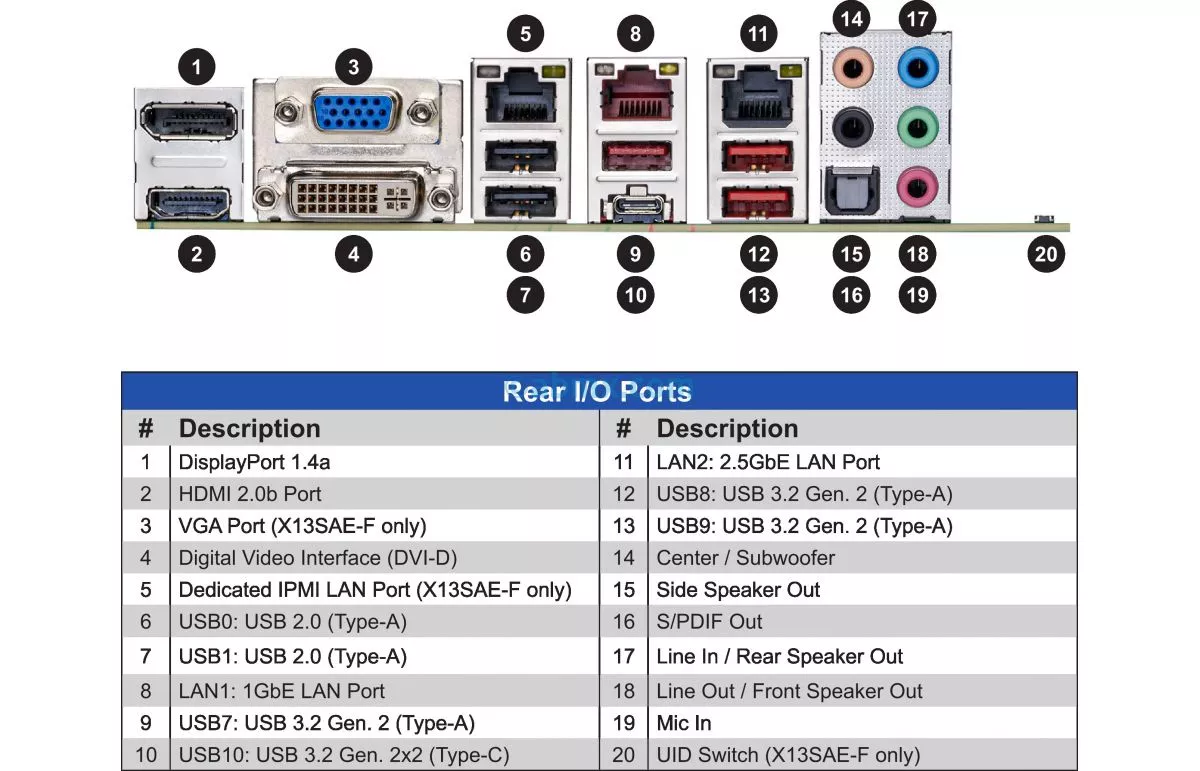 • 1 x RJ45 Dedicated IPMI LAN port